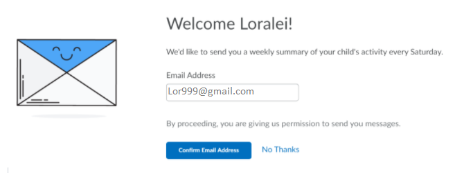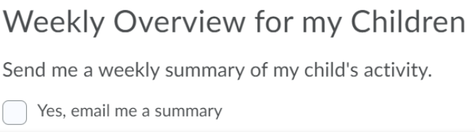 Parents can choose to receive weekly emails every Saturday at 8 AM. One email summary is sent per child per week.