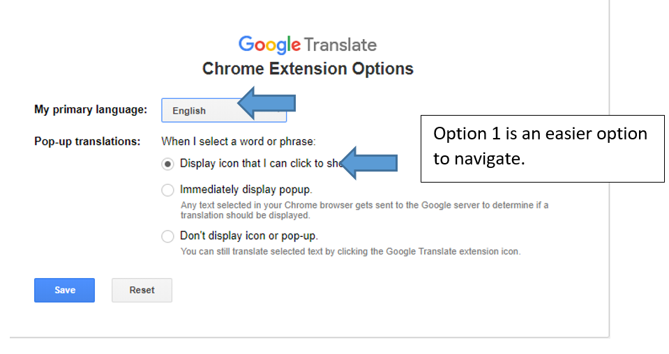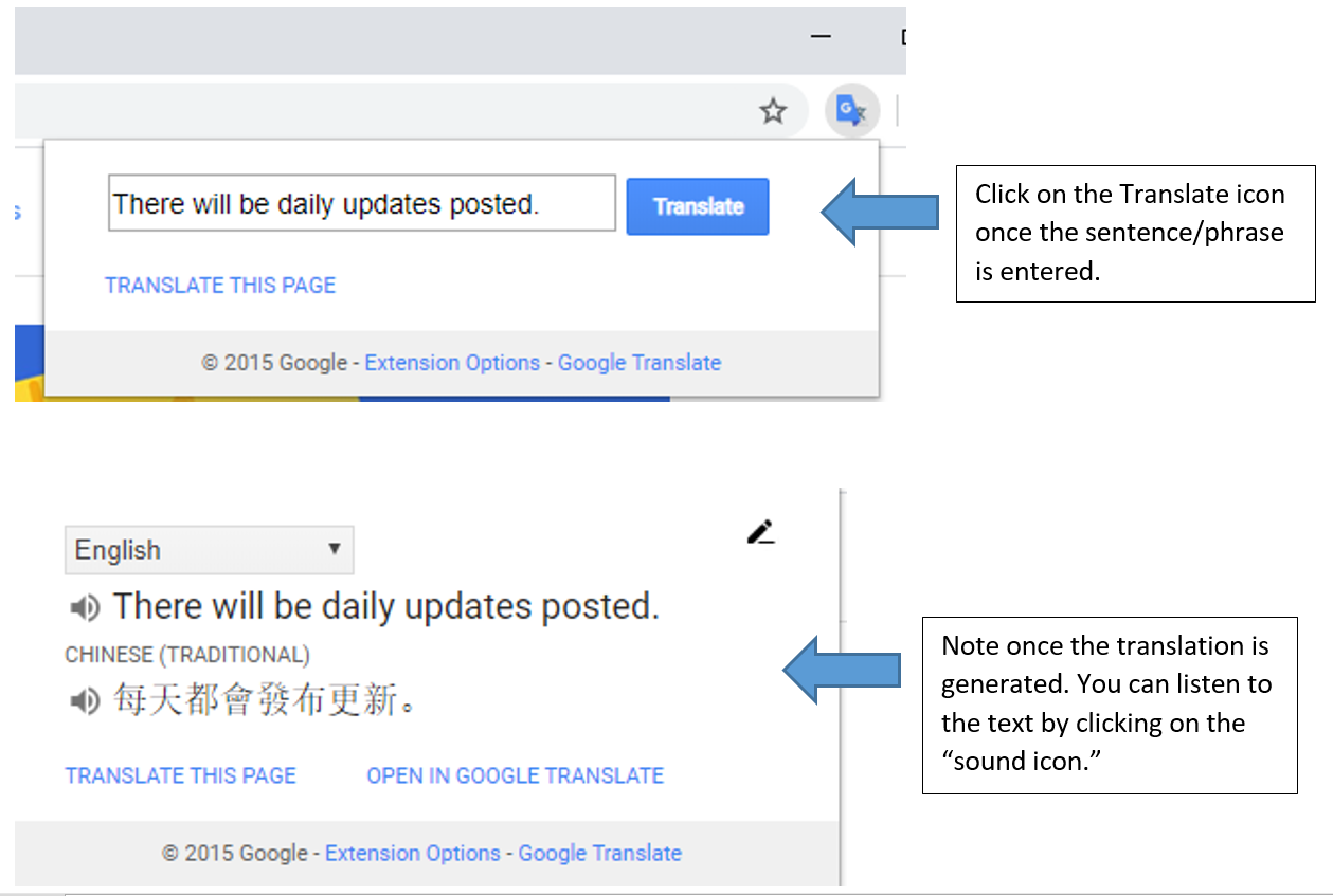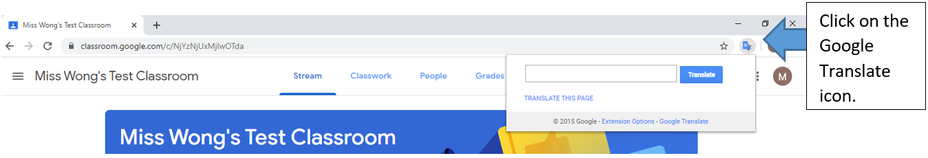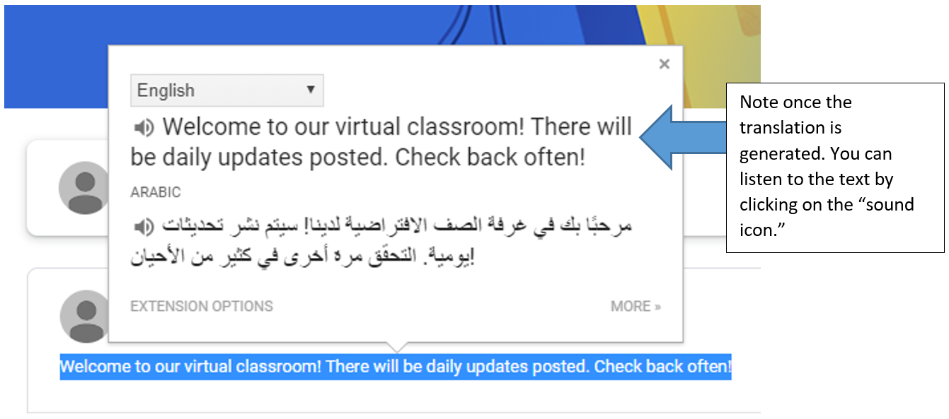 1. You have three options with Google Translate Extension in Chrome for Google Classroom.