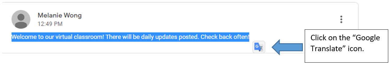 c. Students can also highlight specific text in Google Classroom and translate it.