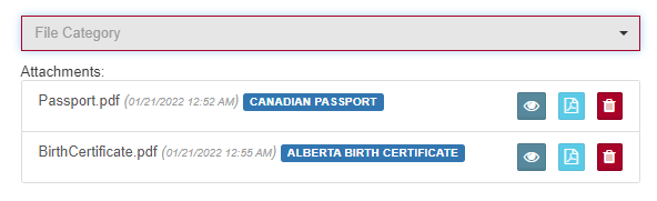 - From File Category dropdown, select the document type in the list (e.g., Canadian Birth Certificate).