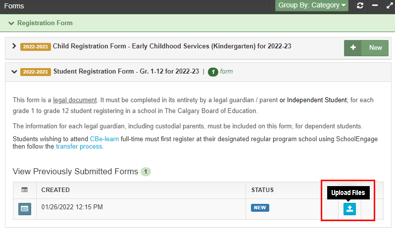 Certain forms require documentation to be uploaded before they can be processed (e.g., proof of address, copy of a child’s birth certificate). A digital copy of the document can be uploaded into SchoolEngage.